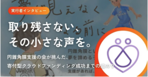 多くの方のご協力をいただき、たくさんのご寄付が集まって、昨年9月より未成年の円錐角膜の方で進行停止のために角膜クロスリンキングを受けた方に対して、1眼につき3万円のご支援を開始できています。